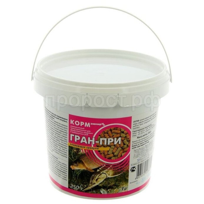 5.Животные доступны для заказа самовывозом из сети зоомаркетов "ПРОРОСТ". Питомцы не доставляется транспортной компанией.Гранулы «ГРАН-ПРИ» содержат все элементы питания, необходимые для нормального роста и жизнедеятельности рыб, в том числе, натуральные компоненты с высоким содержанием белка, каротиноиды и витамины, способствующие укреплению здоровья и повышению яркости окраски. Не замутняет воду.